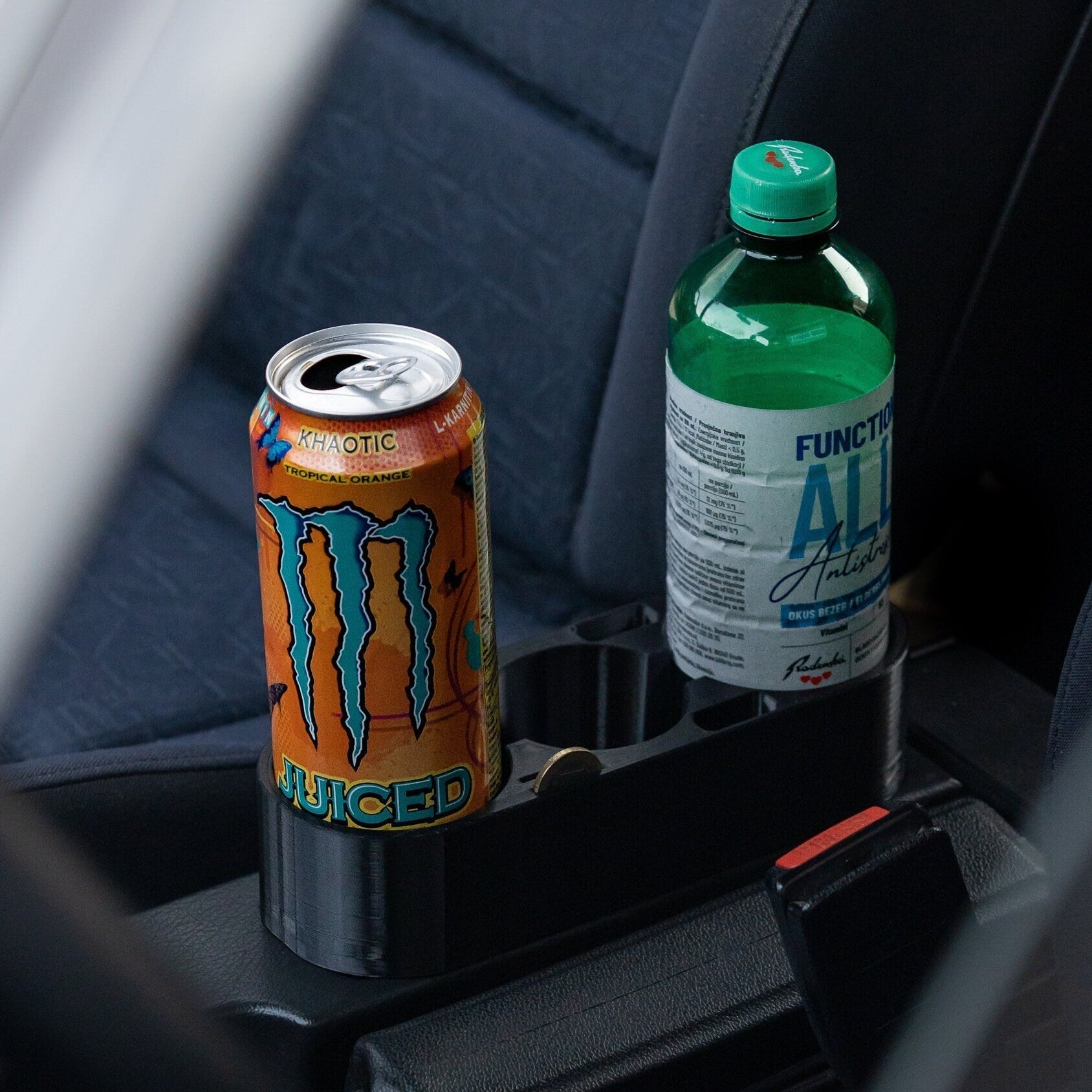 Bietet Platz für zwei Getränke (bis 500 ml) sowie eine zusätzliche kleinere Dose (355 ml) in der Mitte – perfekt für unterwegs.